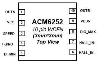 產(chǎn)品名稱: ACM6252(12V/1.2A單相直流無刷電機(jī)驅(qū)動IC)