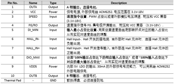ACM6252可以在搭配一個Hall開關(guān)或者Hall元件的情況下,以正弦波或者平滑方波的形式驅(qū)動一個單相無刷風(fēng)扇 (或者水泵),內(nèi)部集成4個MOS、基于Hall輸入信號的換相邏輯電路、內(nèi)部可設(shè)置的調(diào)速曲線邏輯以及一個5V LDO.