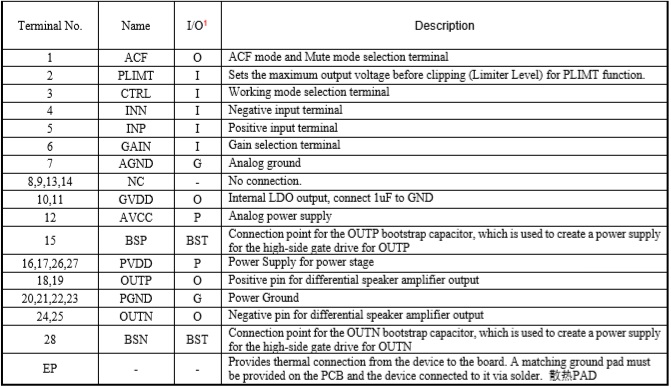 2×145W 雙聲道、數(shù)字輸入D音頻功放,內(nèi)置 DSP 音效處理算法,支持高采樣率以及ClassH動態(tài)升壓控制 |
