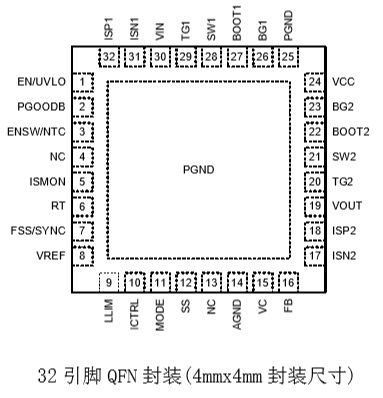 YX2245采用4mmx4mm 32引腳QFN封裝。