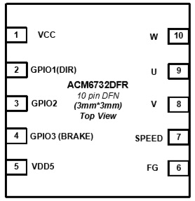 ACM6732支持多種保護機制用來保護ACM6732自身以及外部電機.DFN-10封裝。