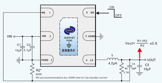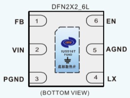 IU5516T采用了纖小的DFN2*2_6L封裝,最低可達到小于3μA漏電,最適合在移動設備的電源內(nèi)部使用。