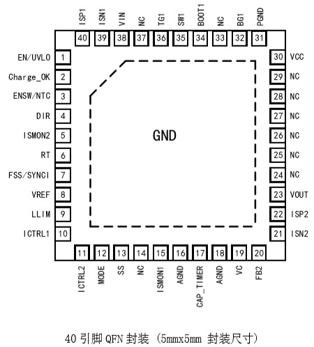 YX2365采用5mm×5mm、40引腳QFN封裝。