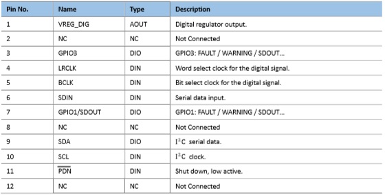 -THD+N≤0.02%@1W, 1kHz, PVDD=12V
