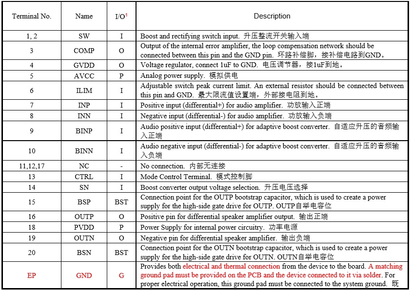 產(chǎn)品功能: 18W (VBAT=3.7V, RL=4Ω, THD+N=10%, fIN = 1kHz)