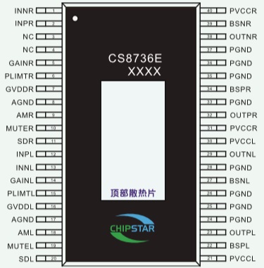 CS8736E是-款2X150W立體聲D類音頻功率放大器,這款器件在頂層設(shè)計了散熱焊盤,焊盤上連接散熱器后可以達(dá)到輸出2x150W的連續(xù)功率.在適宜的電源電壓下可以驅(qū)動低至2Ω的負(fù)載。
