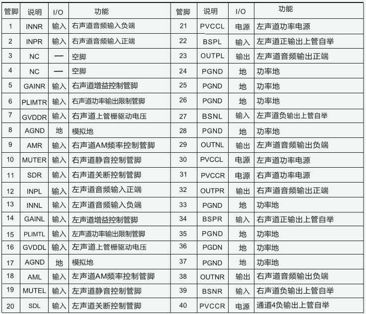 產(chǎn)品功能: 4X155W/34V/4Ω/THD10%